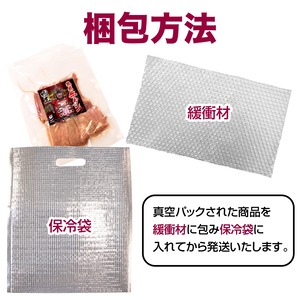味の劣化を避けるために、真空パックの冷蔵状態でお客様の元にお届けしますので、冷凍したりせずにできるだけお早めにお召し上がりください。